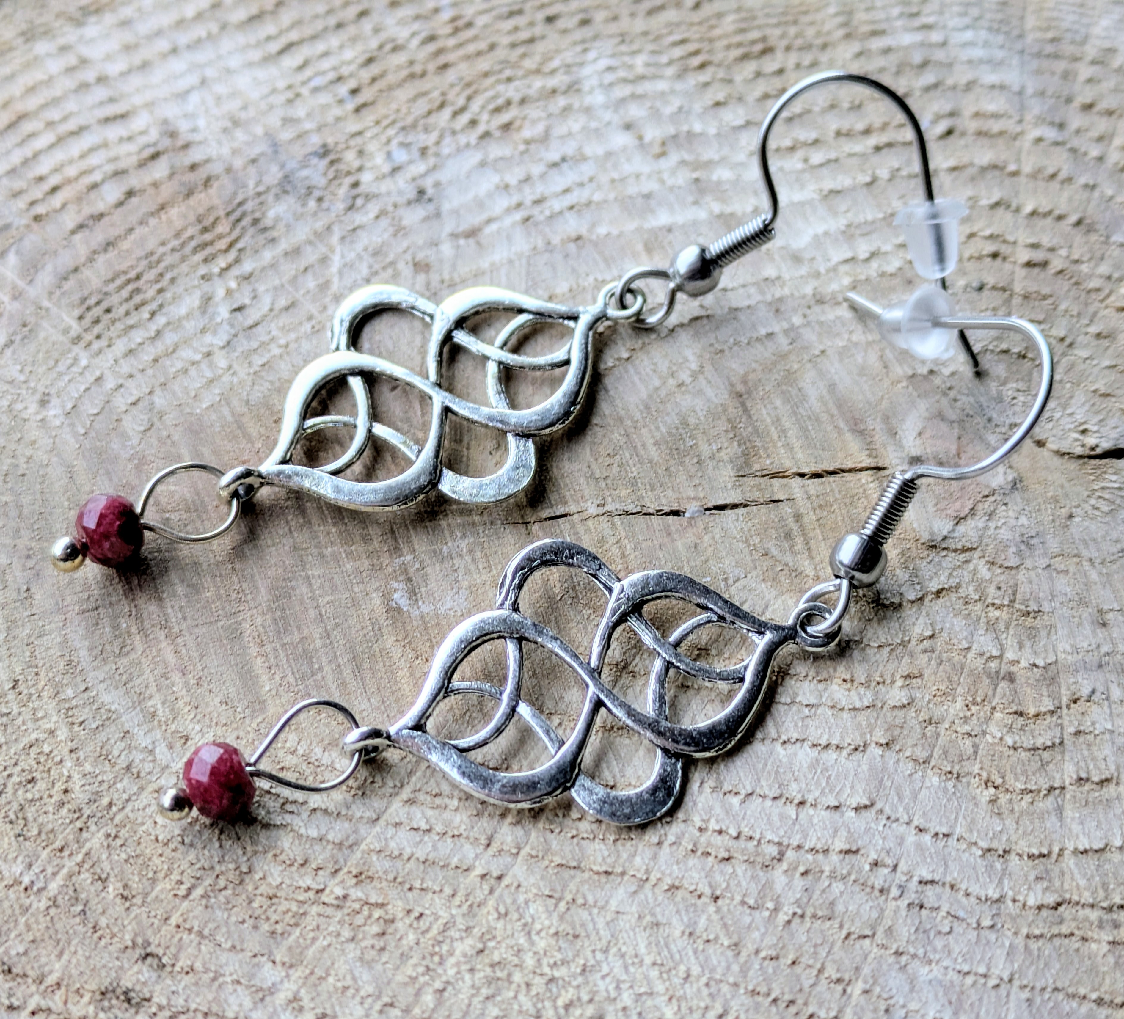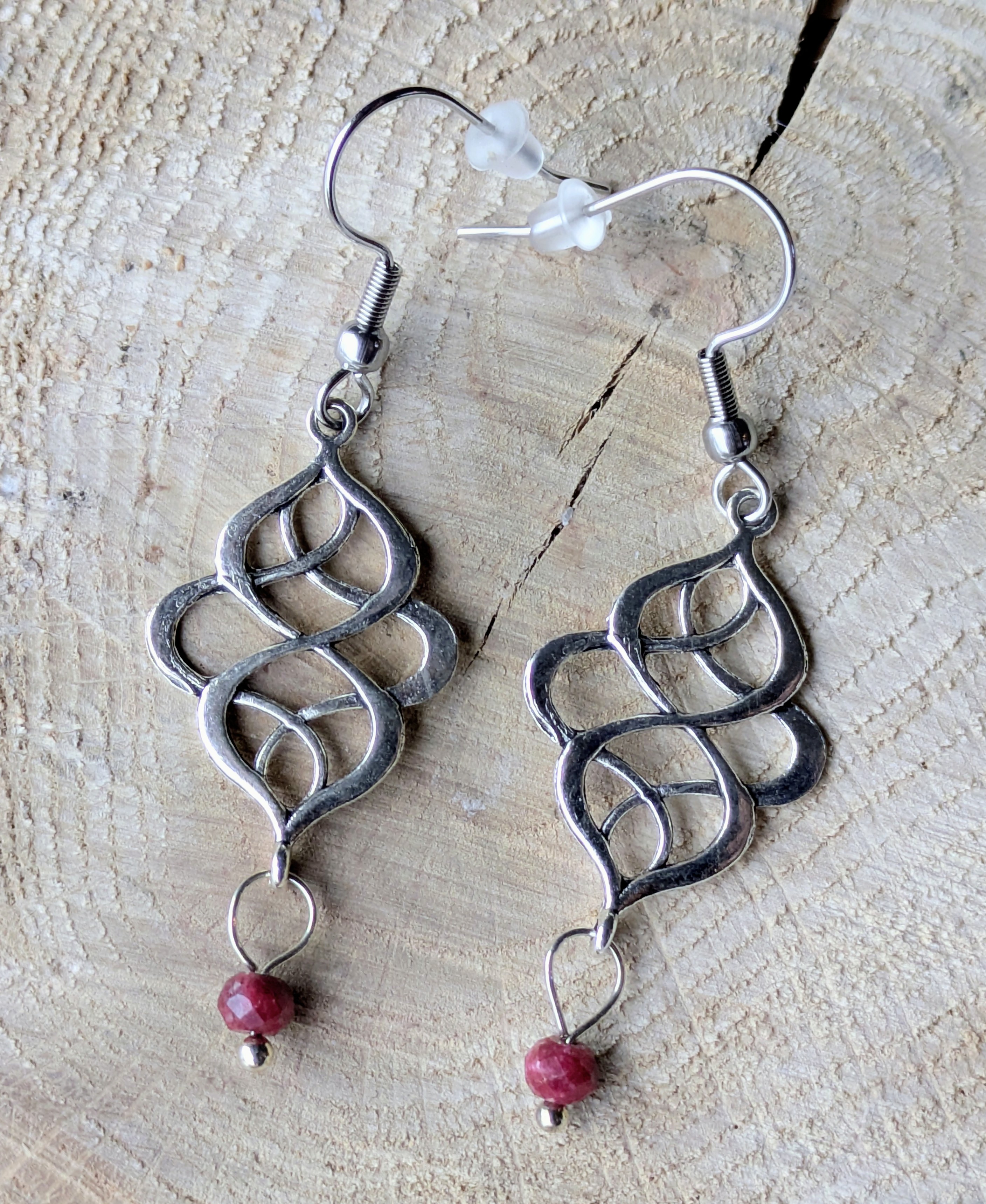 Lovely filigree twist hoop earrings with tiny faceted thulite beads...