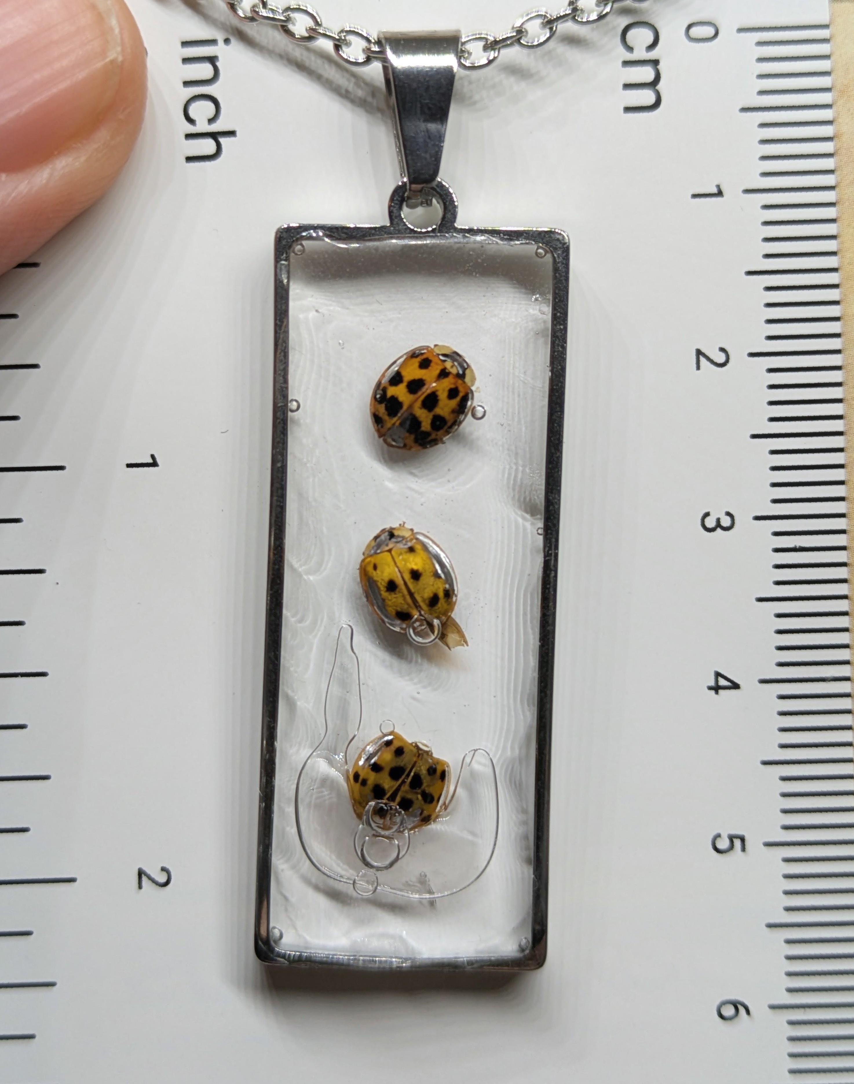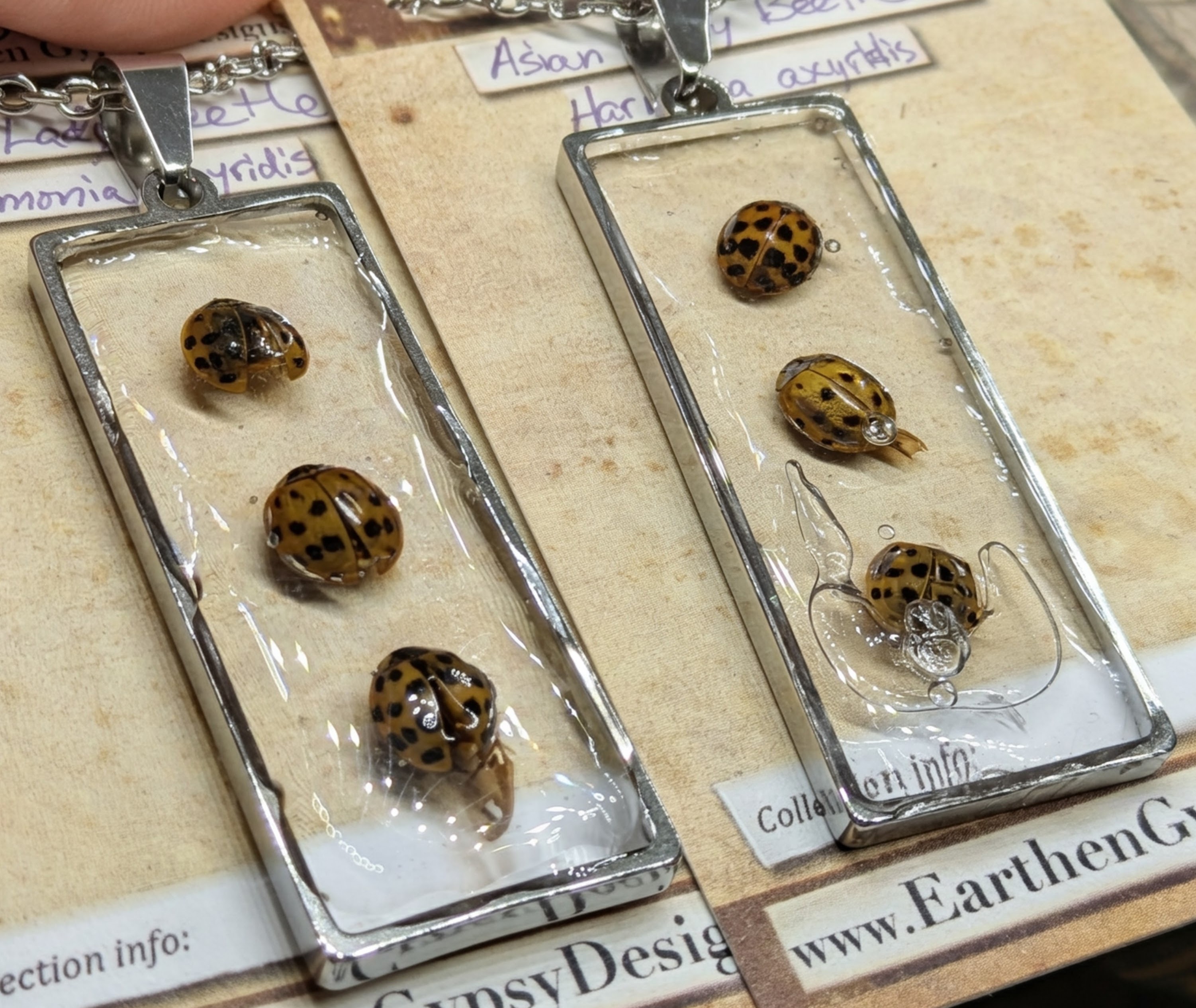 This necklace is made with real Ladybug Beetles in it - the Asian Ladybug Beetle, Harmonia axyridis.