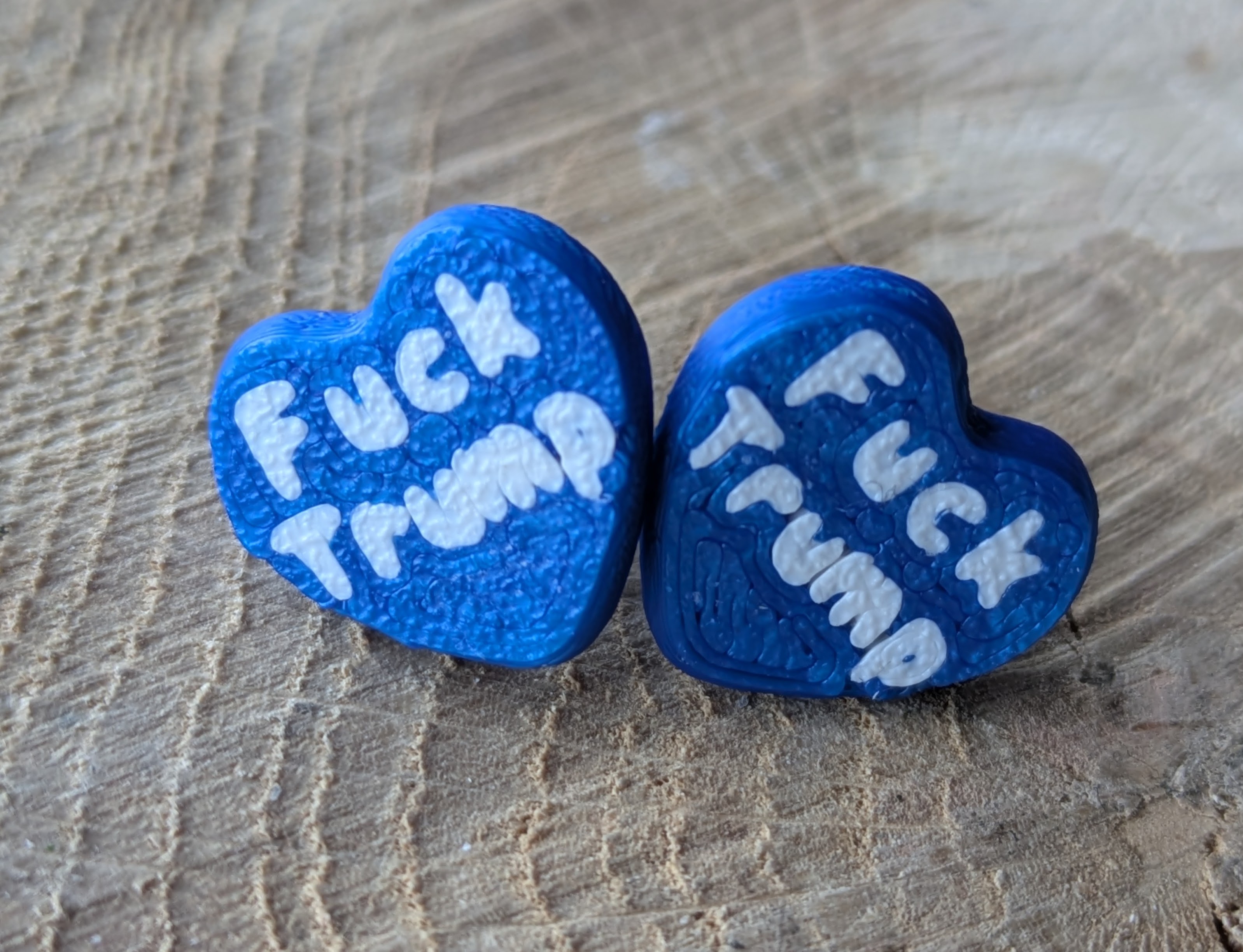 Hypoallergenic stainless steel backs. 3D printed heart 15mm in diameter. Comes with metal and rubber backs.