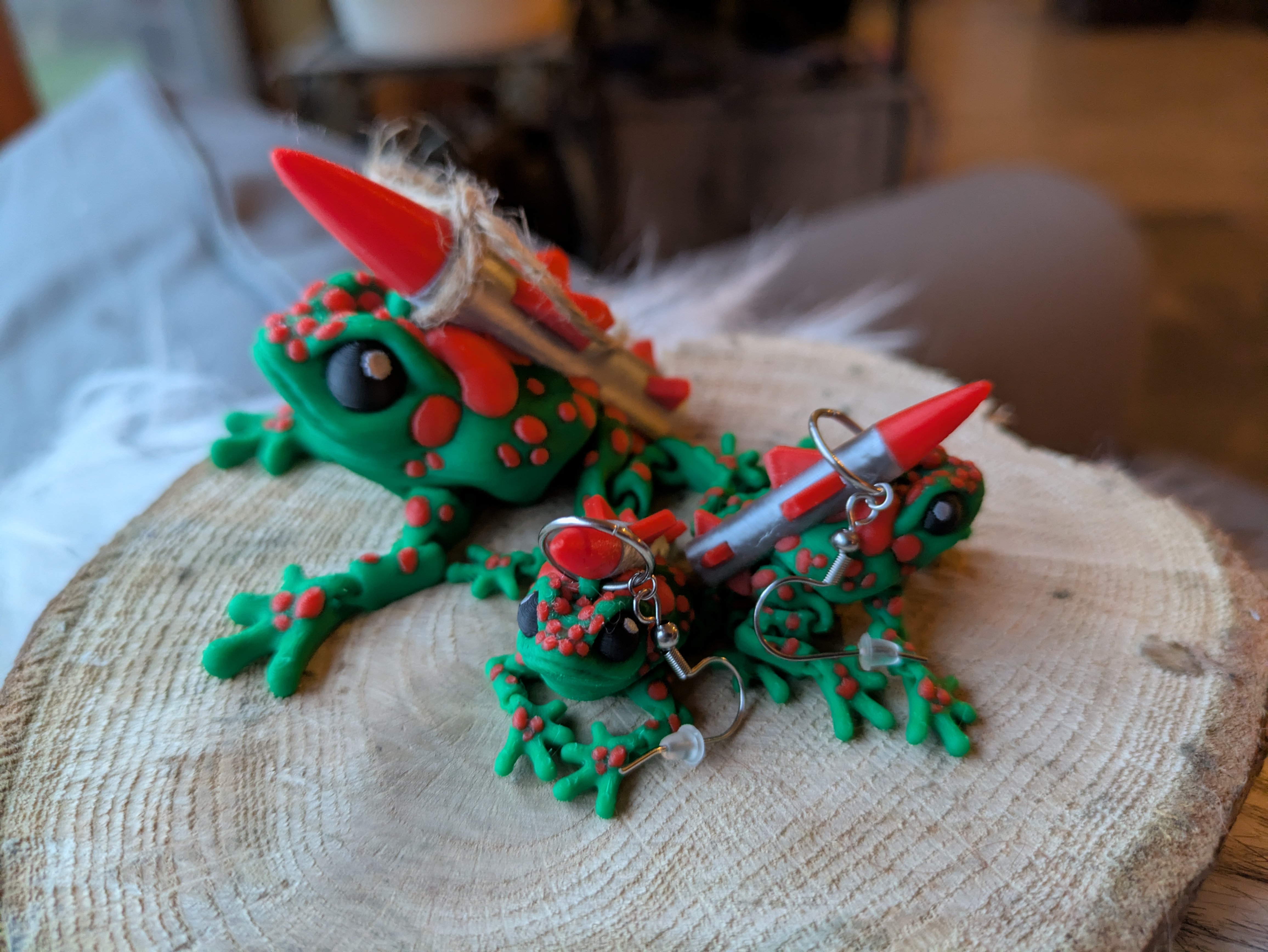 Only includes the one larger frog on the left, not the smaller earrings (I just need to take more photos)