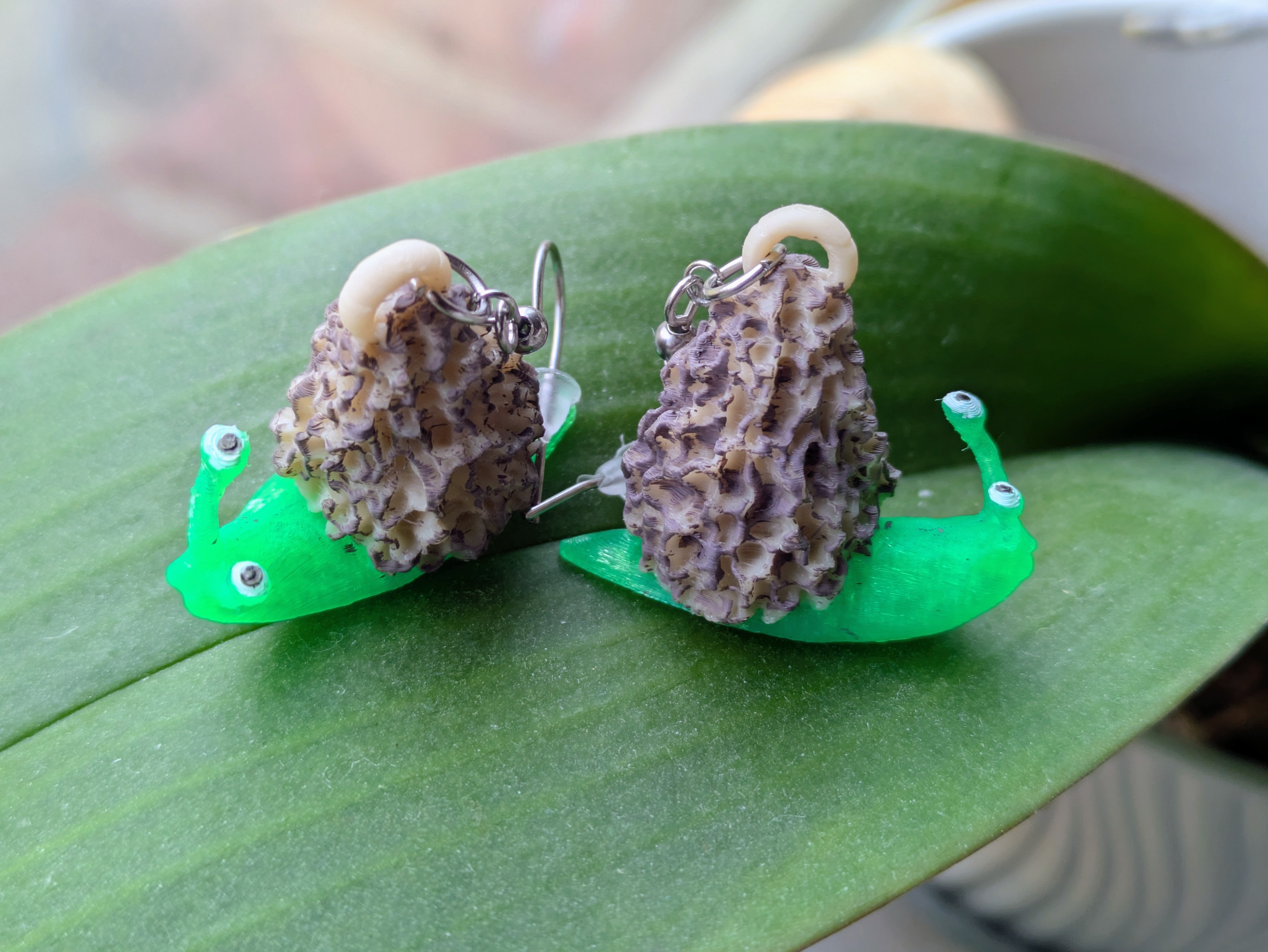 Adorable mushroom snails - look at their tiny eyeballs! Snails are 3d printed with hand painted accents.