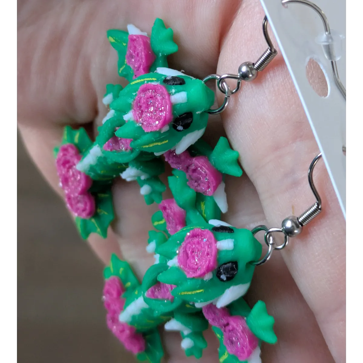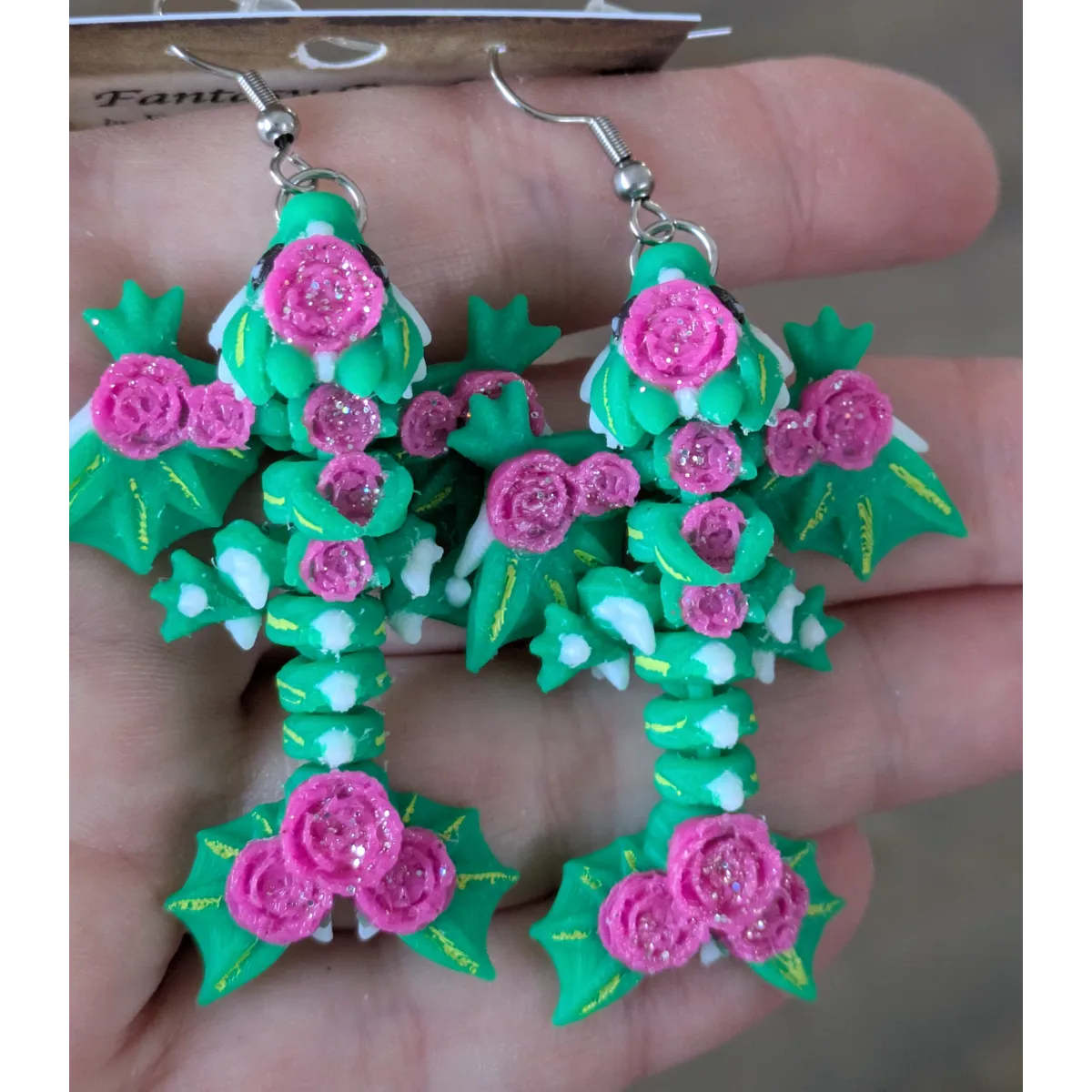 Little rose wyvern dragons. 3d printed with hand painted accents. Wyverns are articulated.