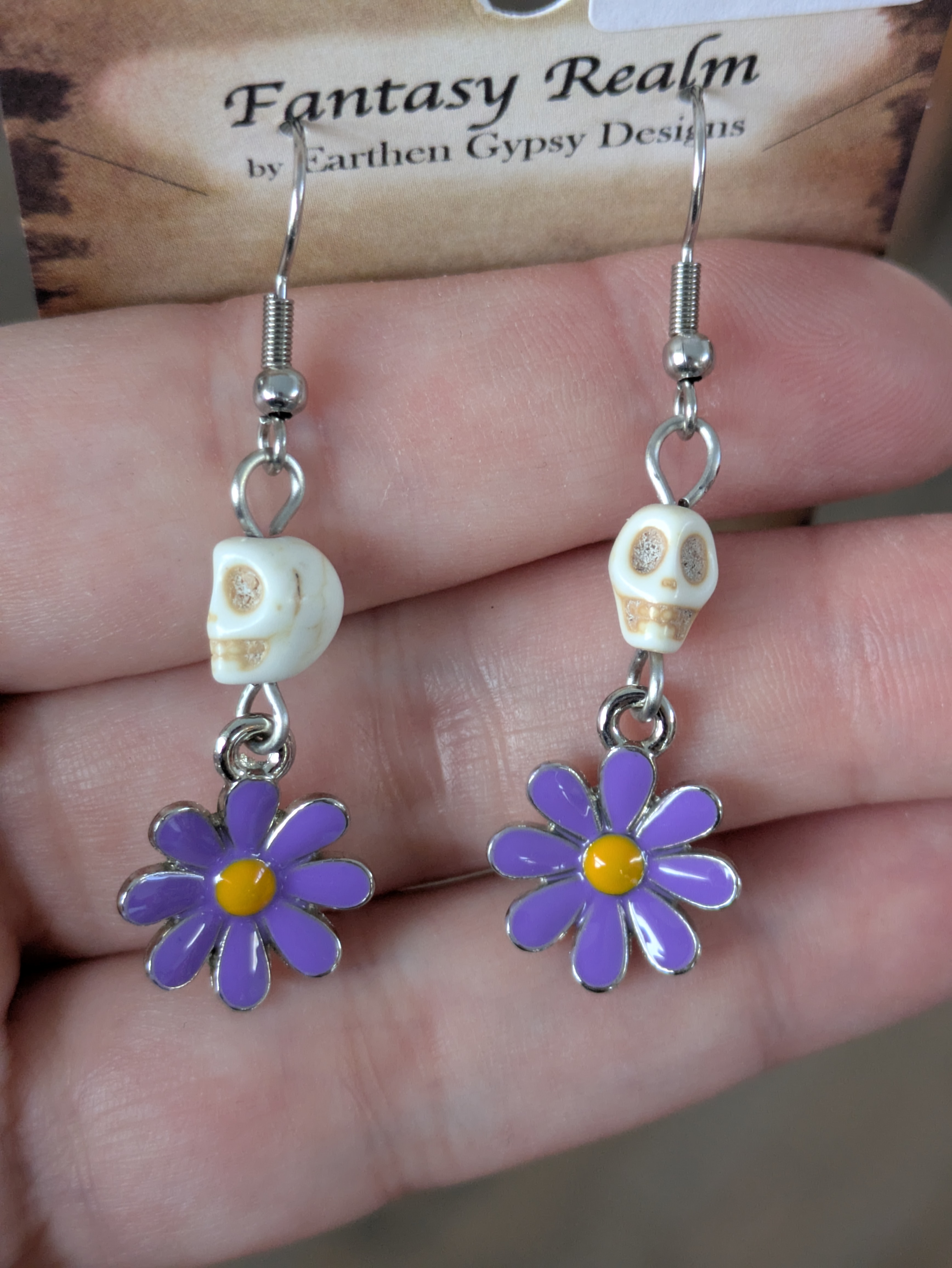Skull & Purple Daisy earrings