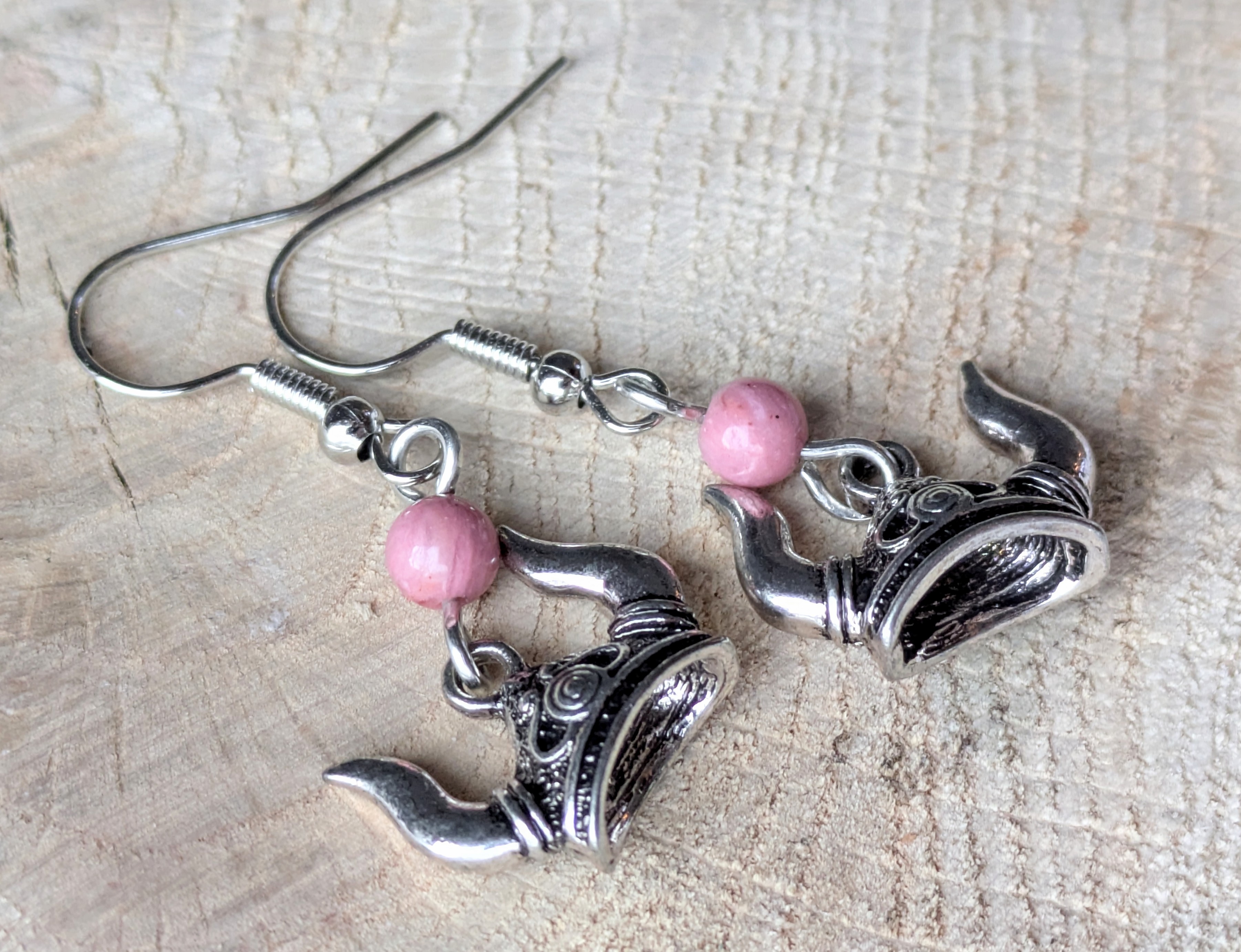 Viking Helmet & Thulite Earrings