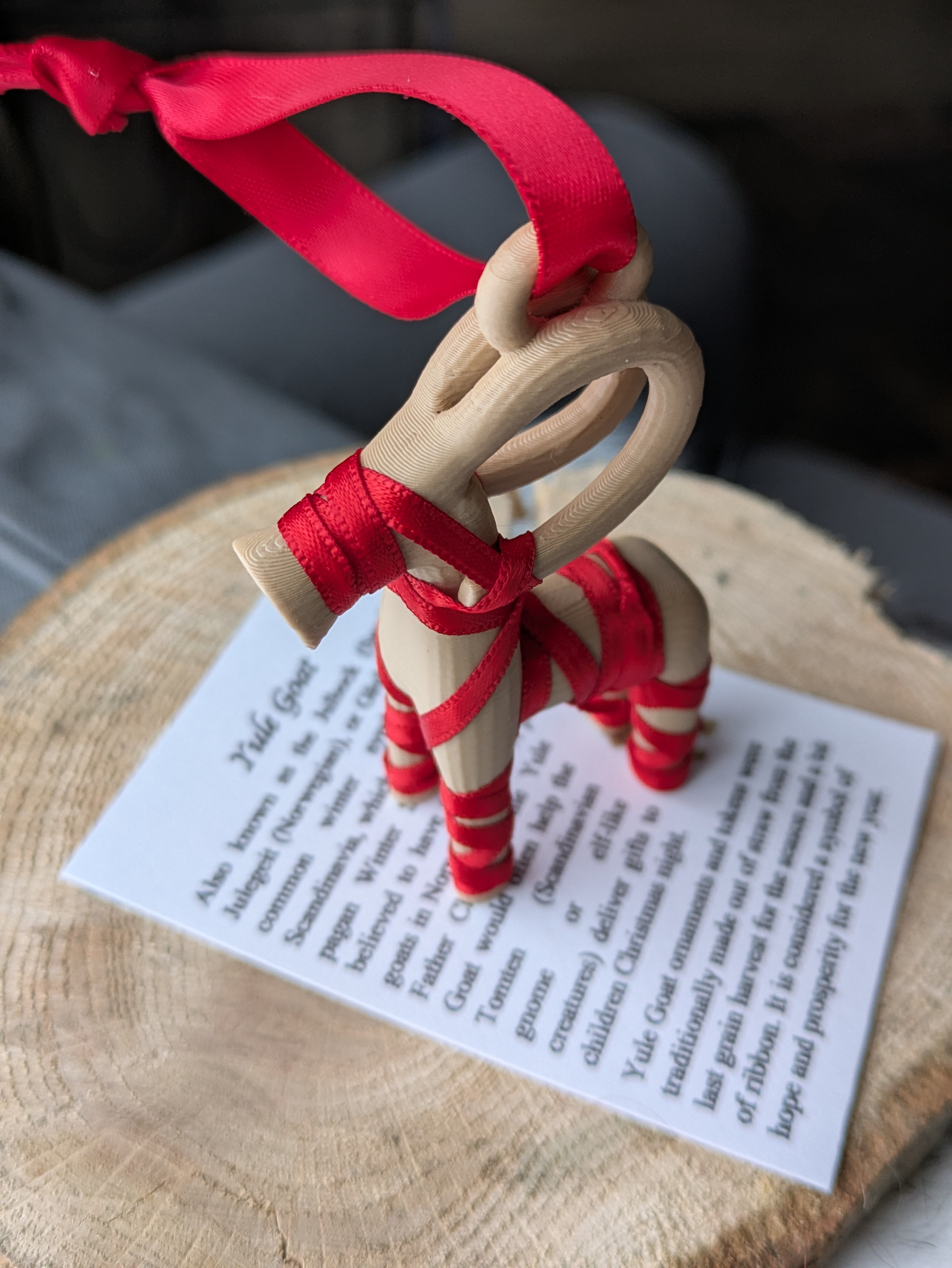 3d printed Julbock/Yule Goat ornament with hand wrapped ribbon adornment.