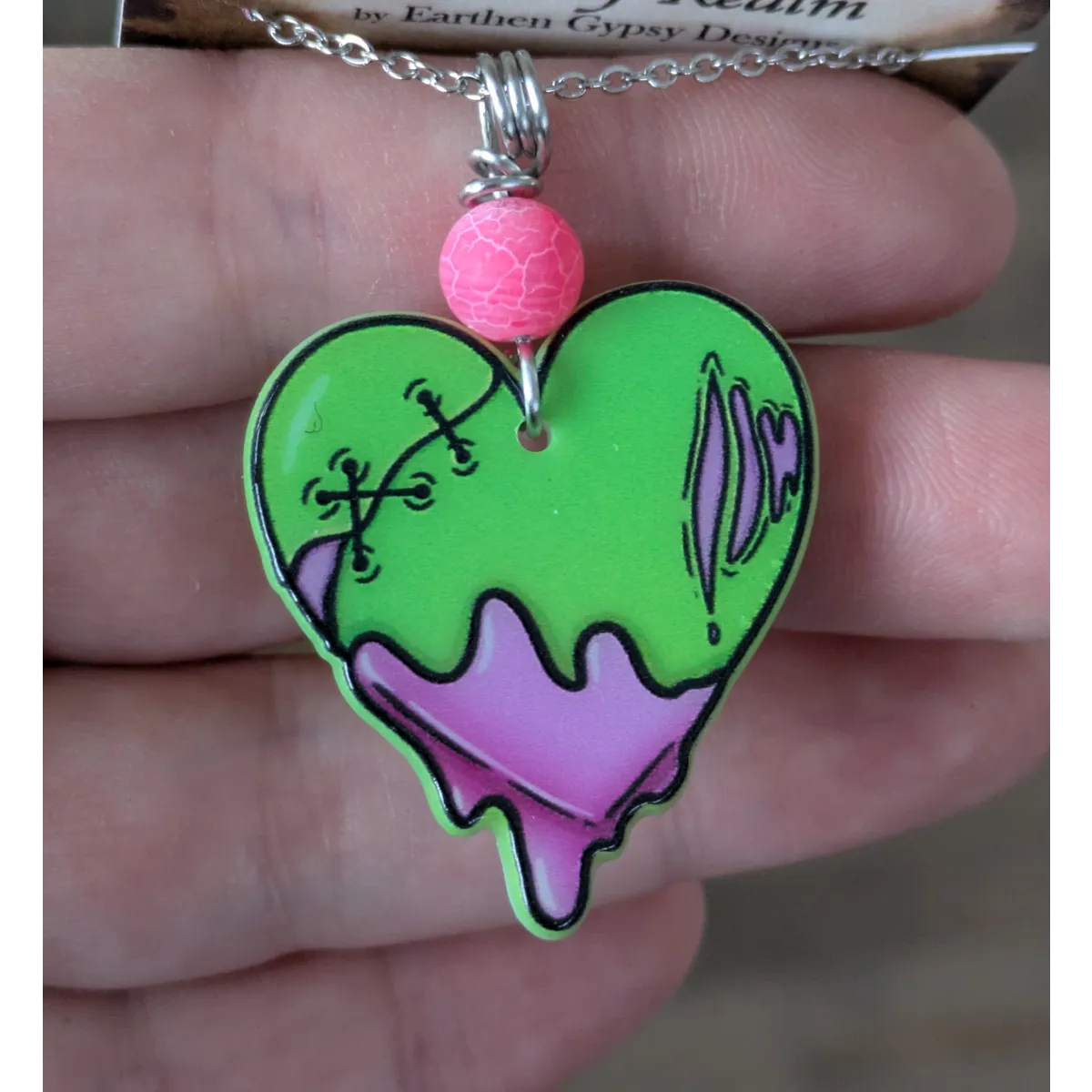 Acrylic charms and frosted crackle glass beads - everything you need for your zombie love needs, lol.